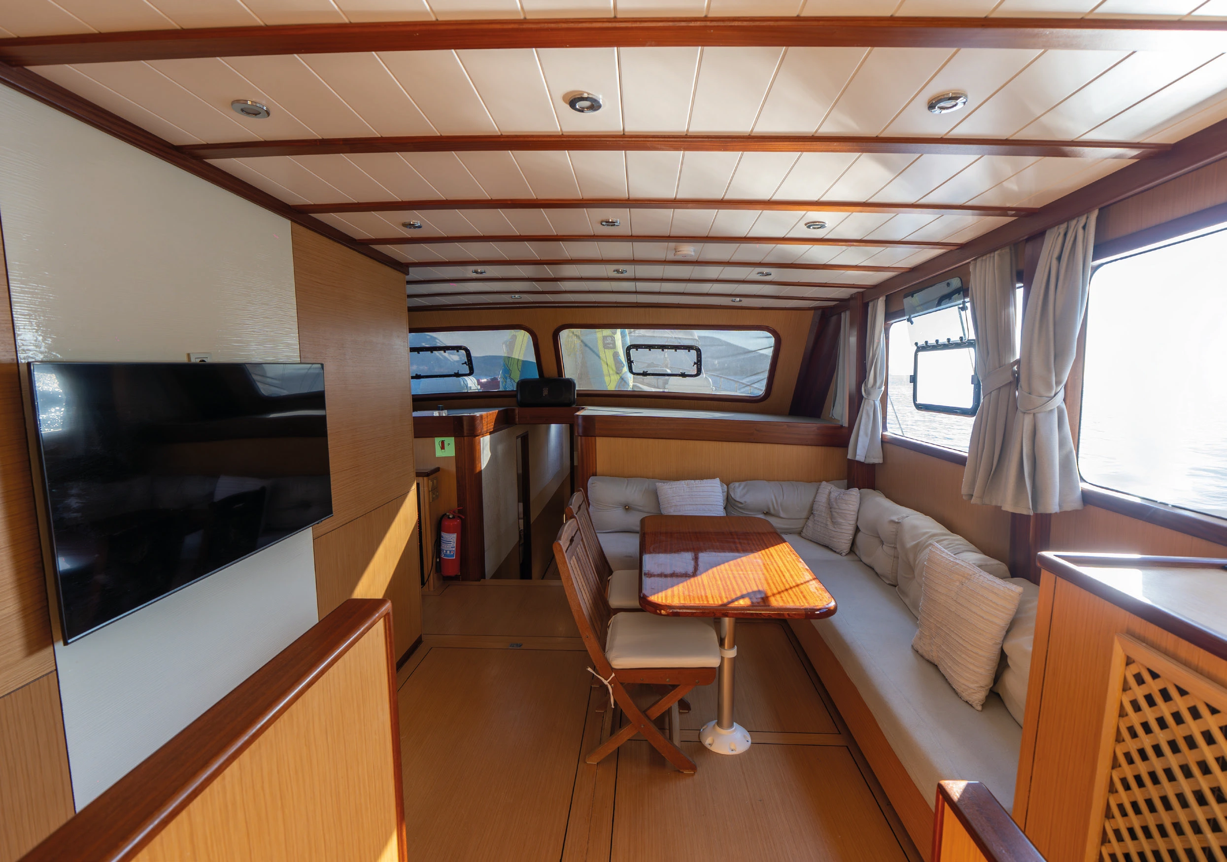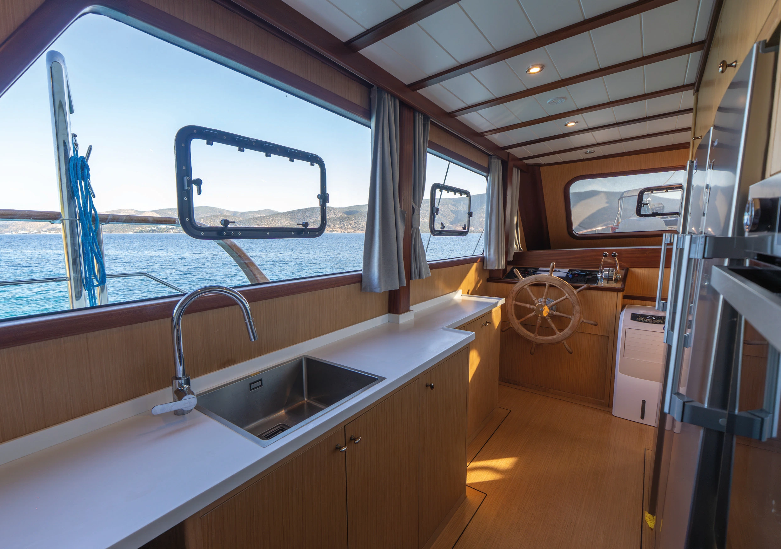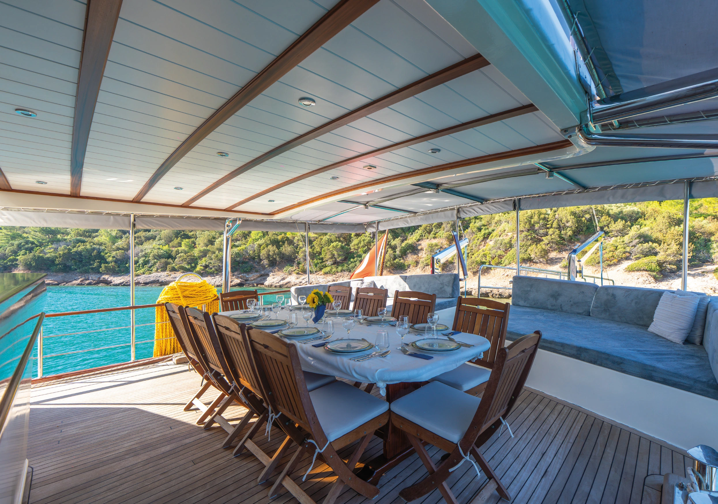 With her wide beam and thoughtfully designed deck layout, GIULIA provides generous sunbathing areas, comfortable alfresco dining, and smooth transitions between indoor and outdoor spaces. She is an ideal choice for families and groups seeking a refined yet relaxed yacht holiday in Bodrum and the Aegean.