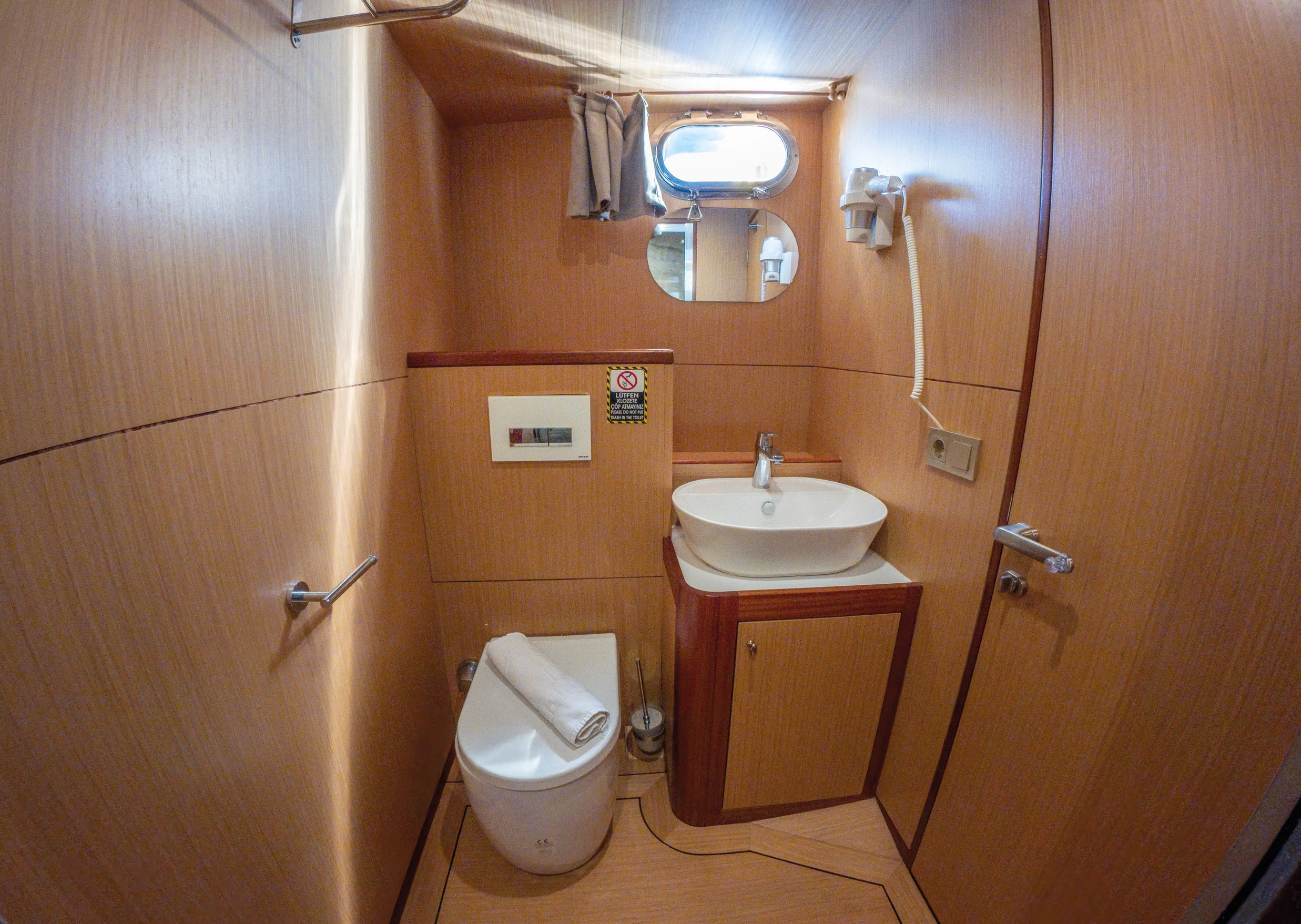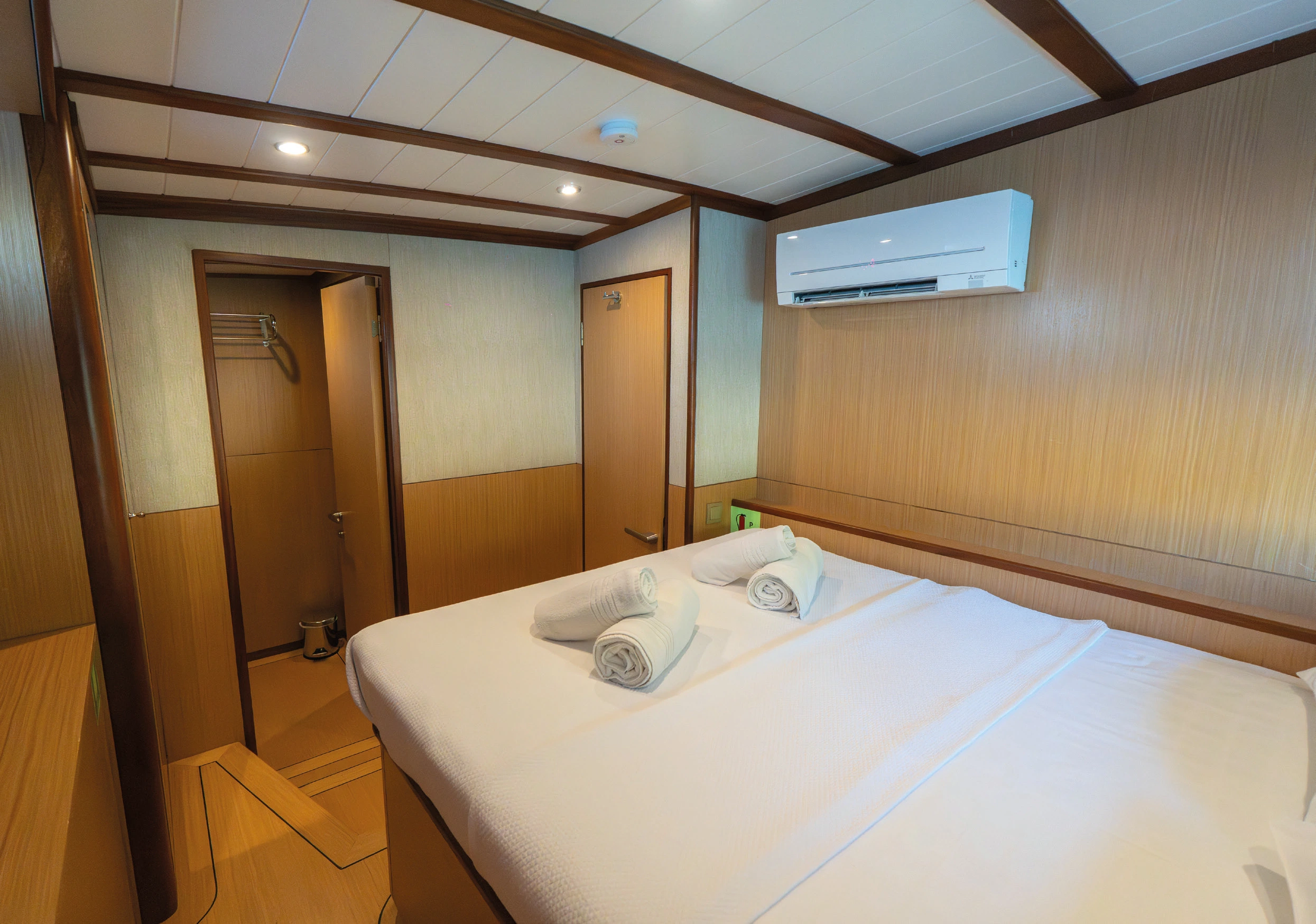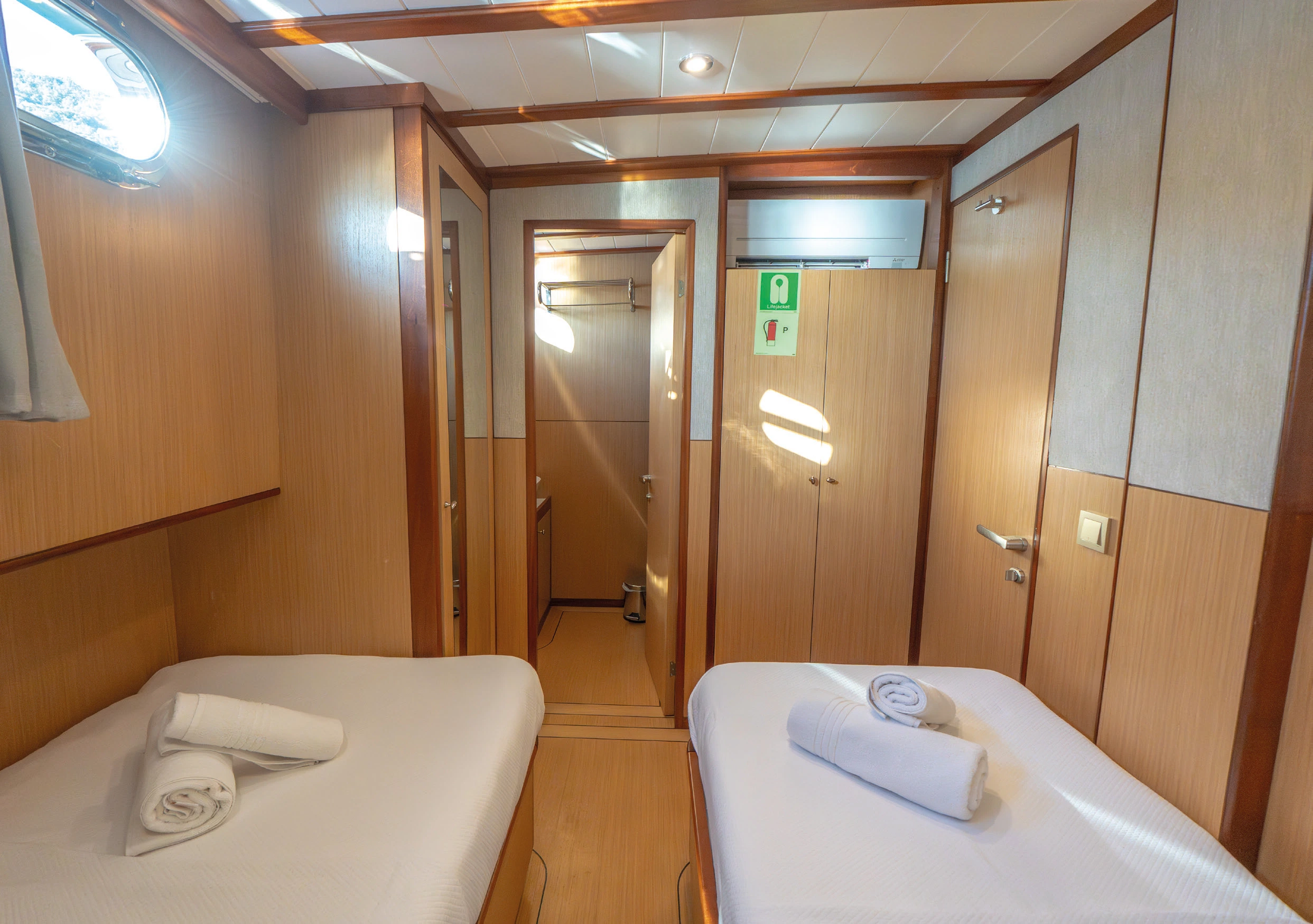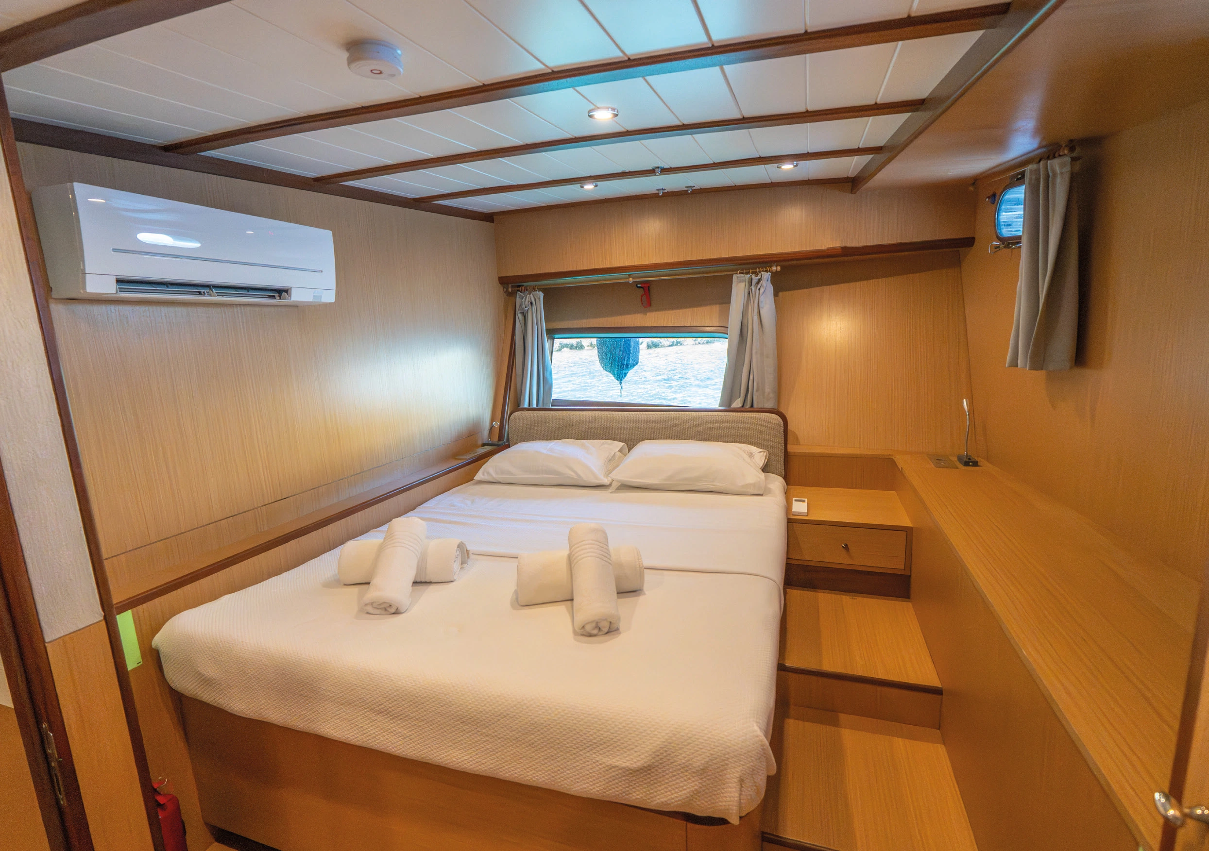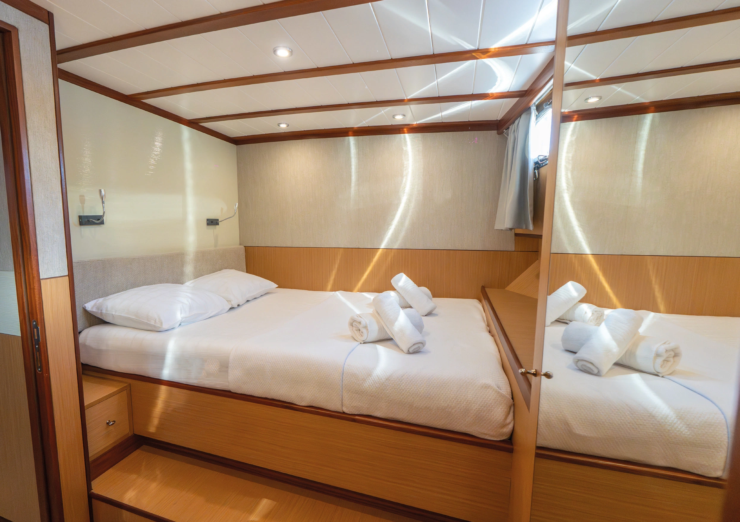 GIULIA accommodates up to 12 guests in 6 spacious cabins, all designed with comfort, privacy, and elegant wooden interiors.